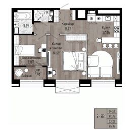 Квартира свободной планировки для воплощения индивидуального дизайна. Установлена входная дверь, радиаторы отопления, приборы учёта, стеклопакеты в алюминиевом профиле. Выложены стены сан.узла.