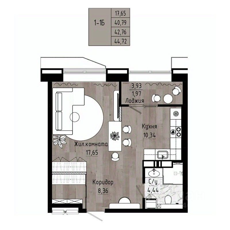 Общая площадь42,76 м²