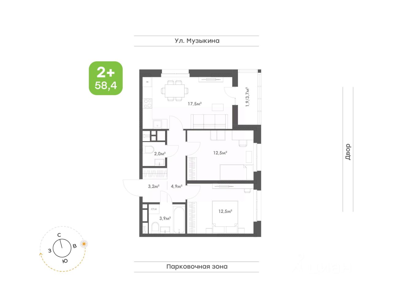 58,4 м²