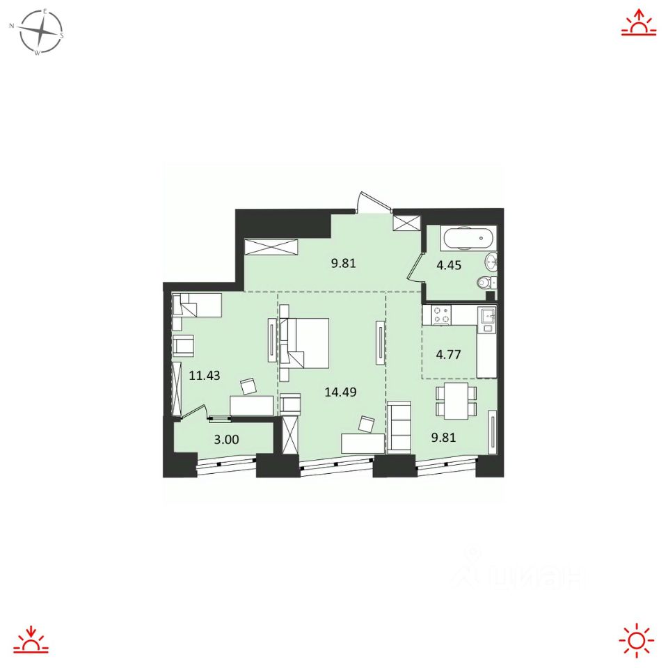 Продаётся 3-комнатная квартира 57,76 м2 напрямую от застройщика в жилом комплексе "Атмосфера".