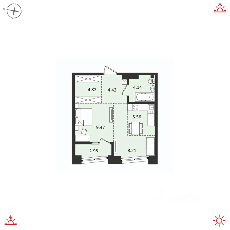 Площадь 39,6м2