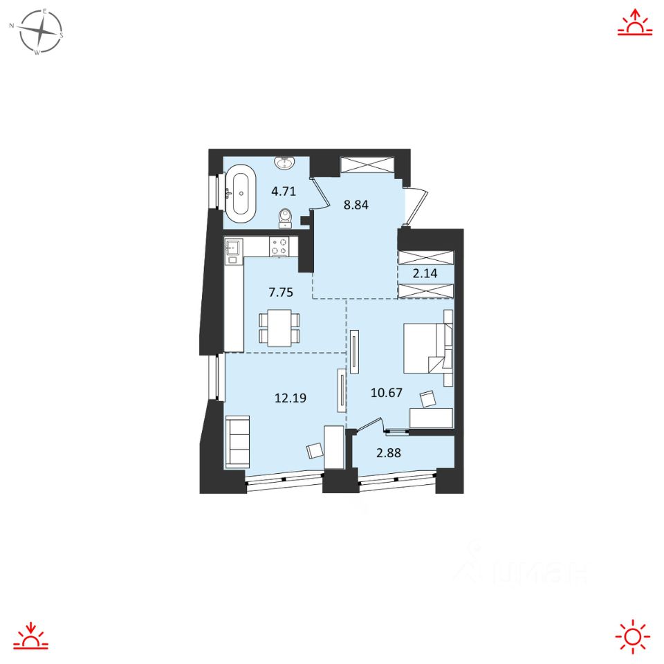 Продаётся 2-комнатная квартира 49,18 м2 напрямую от застройщика в жилом комплексе "Атмосфера".