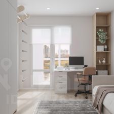 Изолированная комната с гардеробной зоной и выходом на балкон