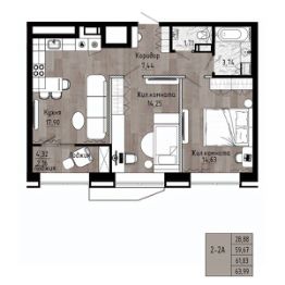 Квартира свободной планировки для воплощения индивидуального дизайна. Установлена входная дверь, радиаторы отопления, приборы учёта, стеклопакеты в алюминиевом профиле. Выложены стены сан.узла.