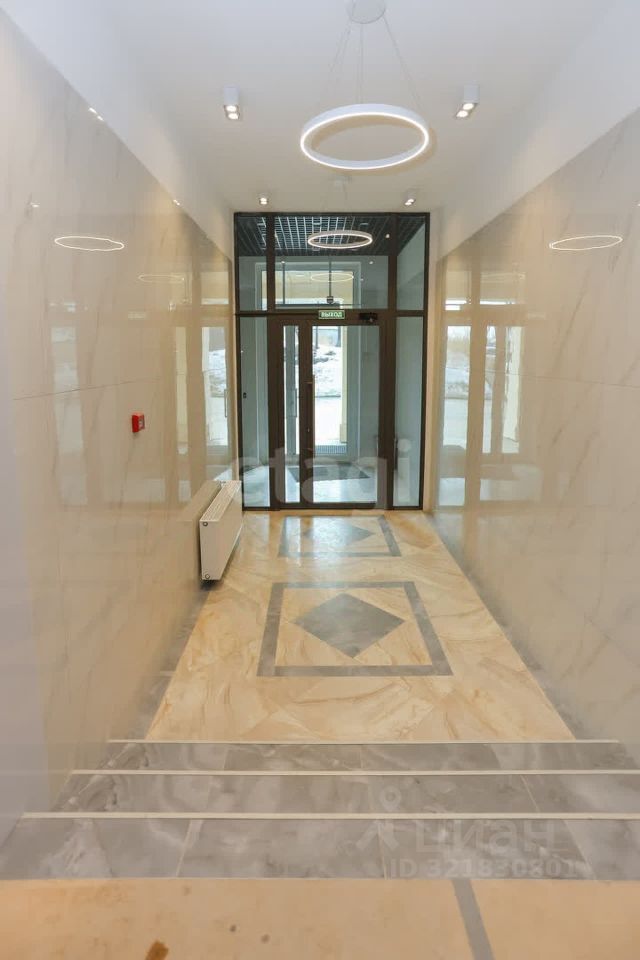 • Стильный подъезд с высокими потолками и отделкой камнем.