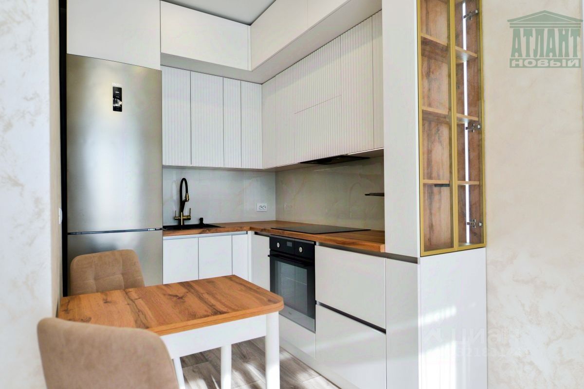 На кухне есть всё для комфортного проживания. Новый современный кухонный гарнитур со всей необходимой встроенной техникой и множеством мест для хранения. Мини бар. Современная подсветка по периметру кухни. В комнате остаётся удобный вместительный шкаф. В сан узле, для вашего удобства установлен большой бойлер, установлена вся новая сантехника.