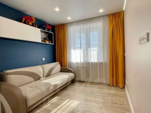 Квартира просторная с раздельными комнатами, в отличном состоянии. Теплая и очень светлая. По всей квартире на полу кварцвенил. На кухне, в санузле и ванной комнате кафель. По всей квартире парящие натяжные потолки, новая проводка(медная), три системы освещения. Стены выровнены, качественно сделана шумоизоляция. В каждой комнате встроенные шкафы, с системой хранения. Рядом с ванной шкаф для стиральной машины и хоз.нужд. Пластиковые окна, лоджия застеклена.