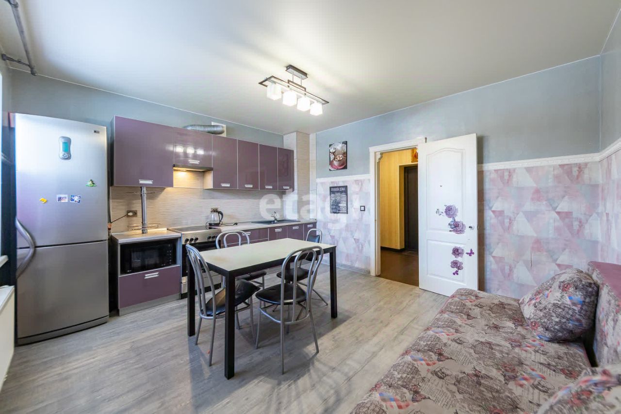 Кухня просторная и полностью оборудована: электрическая плита, мощная вытяжка с подсветкой, микроволновка, большой холодильник и современный кухонный гарнитур.
