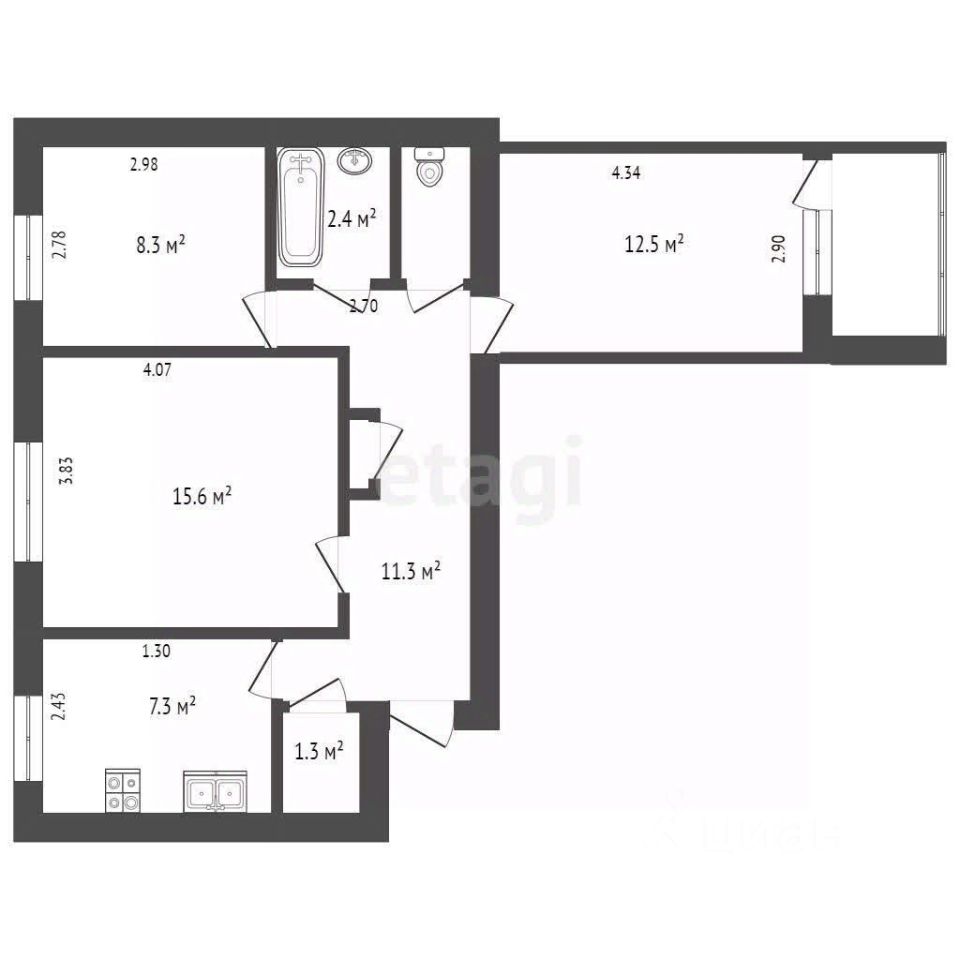 61,3 м²