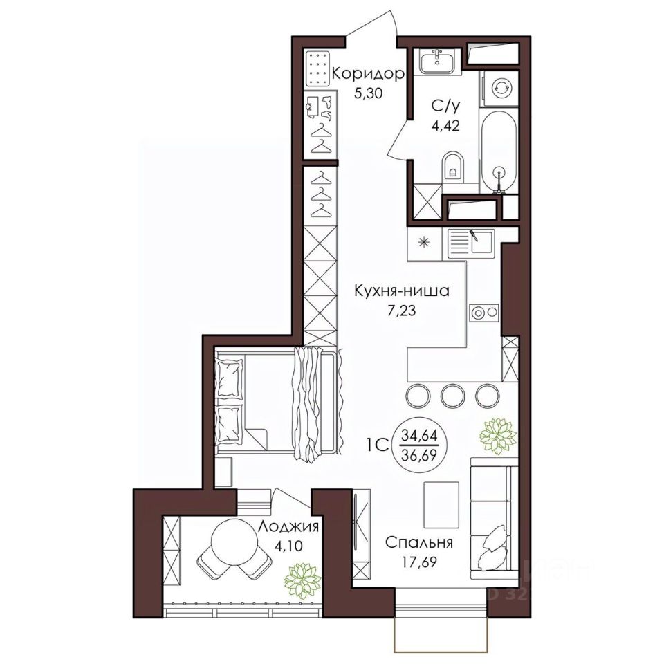 36,4 м²