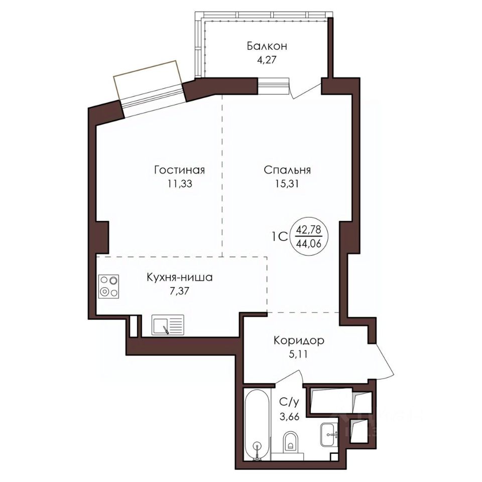 44,06 м²