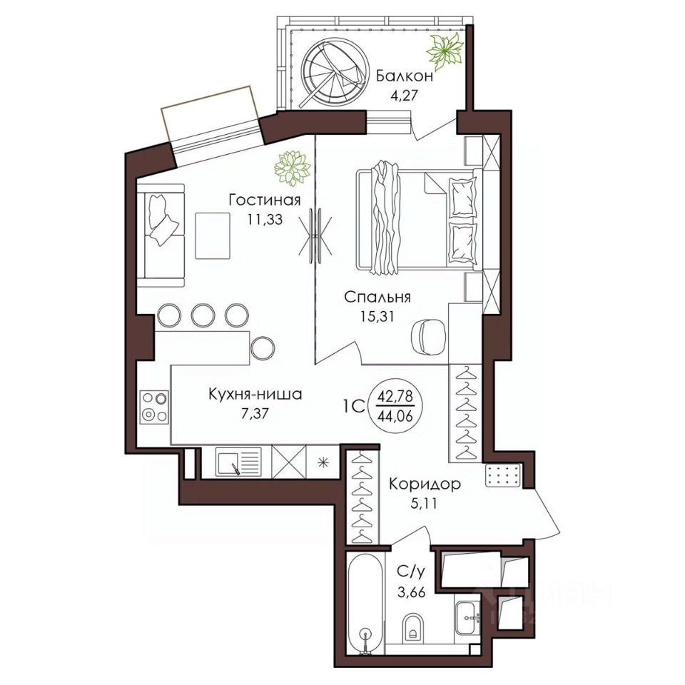 44,06 м²