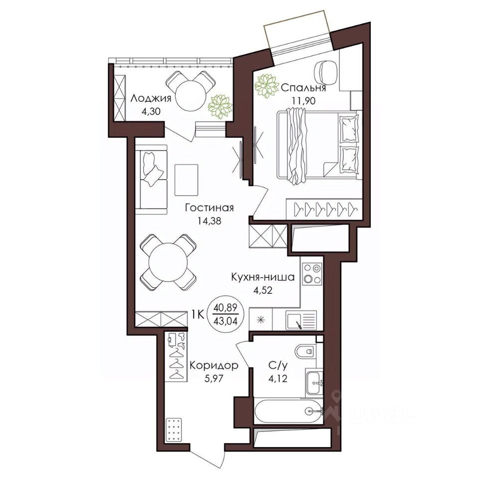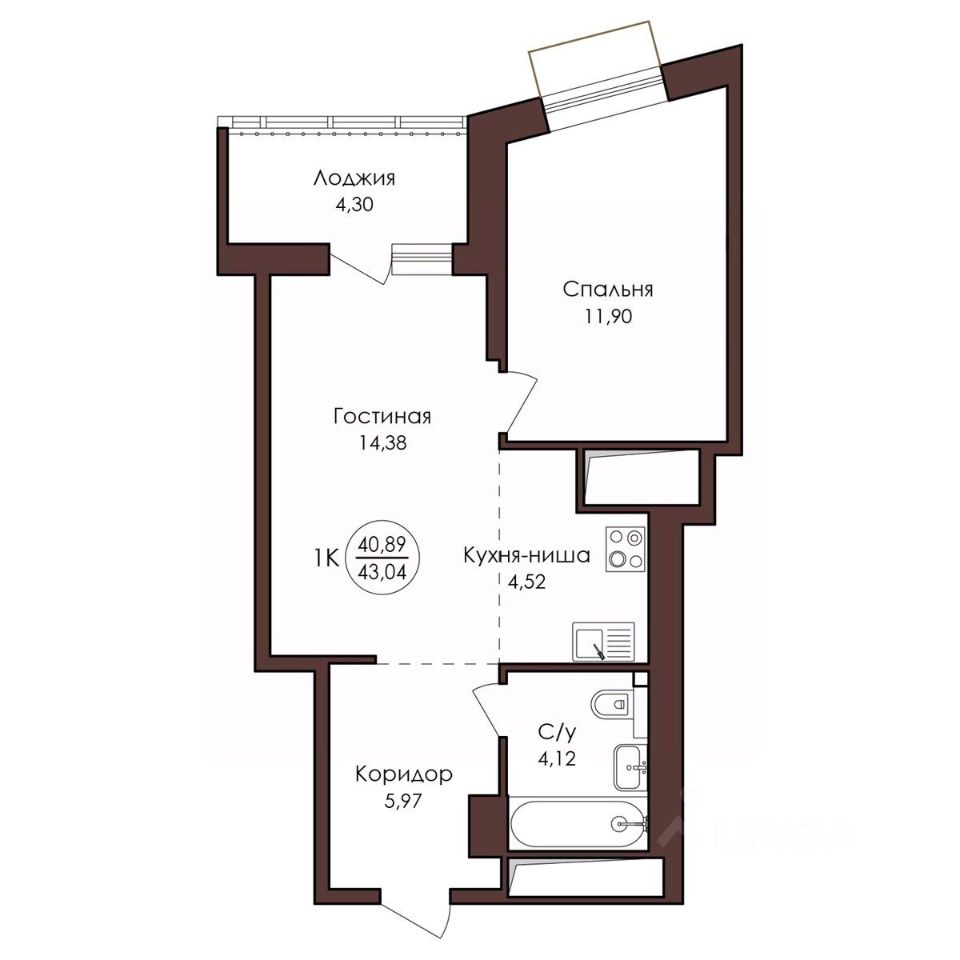 43,04 м²
