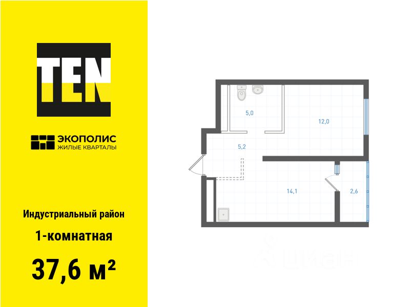 Общая площадь37,6 м²