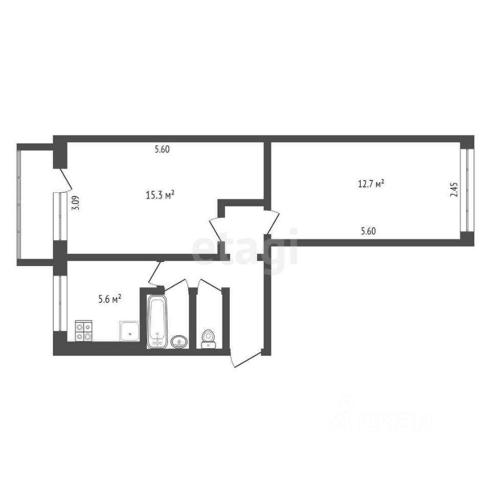 + Квартира расположена на 5 этаже и имеет общую площадь 43,7 кв. метров с балконом.