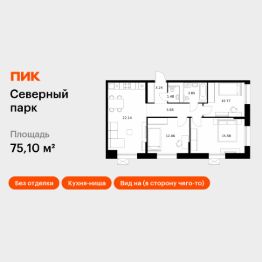 Продаётся 3-комн. квартира площадью 75,1 кв.м на 9 этаже 10 этажного дома (Корпус 10, Секция 1) проекта ПИК Северный парк. Светлый просторный подъезд на уровне земли, функциональная планировка, большие окна, без отделки.