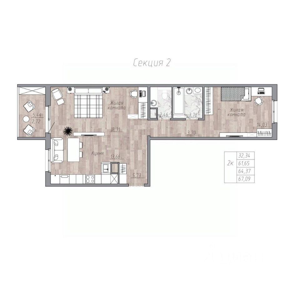 Продаётся 2-комнатная квартира в строящемся доме (Жилой дом 1), срок сдачи: IV-кв. 2026, общей площадью 64.69 кв.м., на 3 этаже. Новый жилой комплекс "ЭКОЛЕНД" от специализированного застройщика "БМК-ДЕВЕЛОПМЕНТ" расположен по адресу: г. Хабаровск, по ул. Октябрьская.