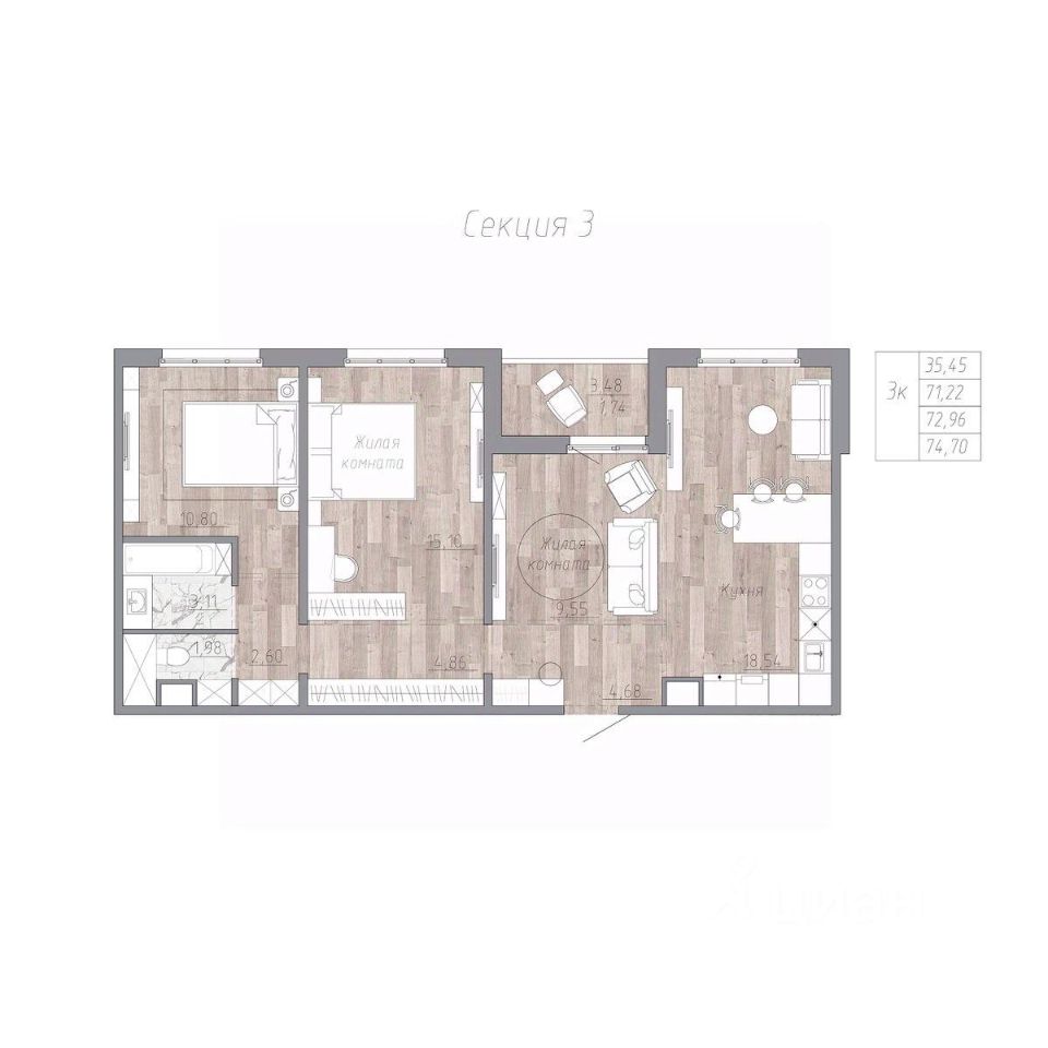 Продаётся 3-комнатная квартира в строящемся доме (Жилой дом 1), срок сдачи: IV-кв. 2026, общей площадью 72.96 кв.м., на 4 этаже. Новый жилой комплекс "ЭКОЛЕНД" от специализированного застройщика "БМК-ДЕВЕЛОПМЕНТ" расположен по адресу: г. Хабаровск, по ул. Октябрьская.