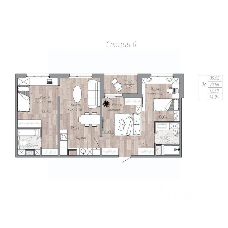 Общая площадь72,3 м²