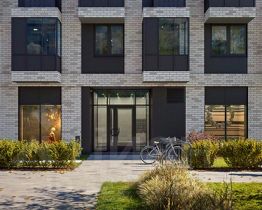 Входы в подъезды "Северного парка" мы сделаем на уровне земли для комфортного перемещения по территории квартала любым способом: пешком, на самокате или с коляской. Благодаря панорамному остеклению, которое пропускает много естественного света, первые этажи будут просторные и светлые.