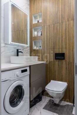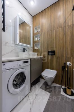 Санузел: Керамогранит на полу и стенах, зеркало с подсветкой, точечные светильники, бойлер 50 л., теплые пол.