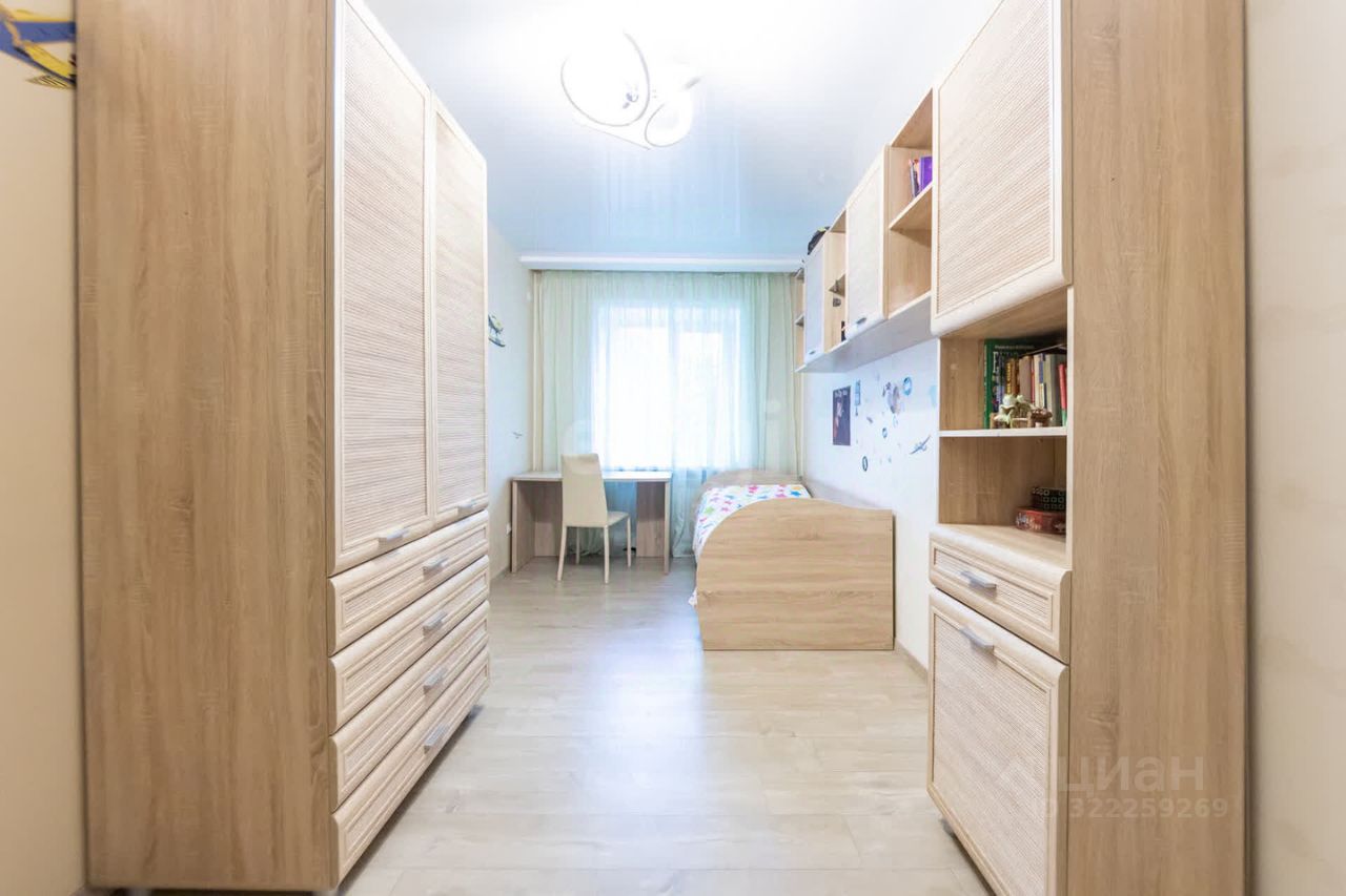 * Детская: Большая. Светлая. Окно смотрит на мир. Остается: Крепкая мебель. Шкафы. Стол для уроков. Главное лестница. Деревянная. Прочная. Ведет наверх. На второй ярус. Или в мир игр. Дети оценят. Мечтать там хорошо.