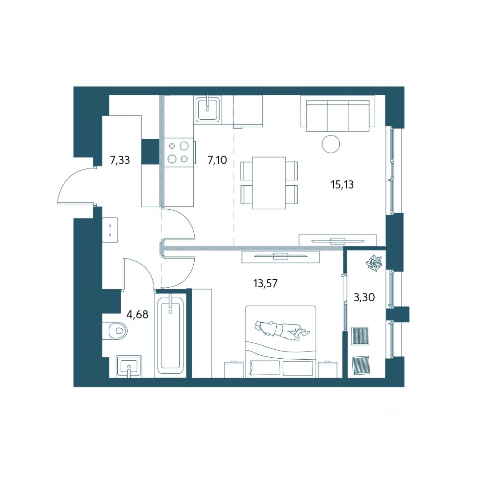 Изолированная спальная комната 13,57м2 с выходом на лоджию с панорамным остеклением!