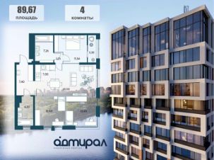 4-комннатная квартира площадью 89.67 м2. Планировка на 2 стороны света! Такая планировка повышает комфорт, способствует хорошему климату внутри жилья и предлагает больше возможностей для светлой и уютной организации пространства.