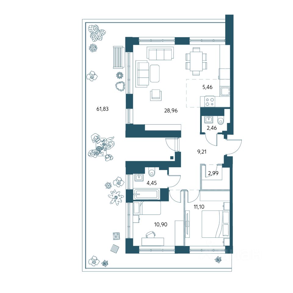 Квартира с лучшими видовыми характеристиками! Обратите внимание на планировку! Терраса площадью 61,83м2. Это идеальное место для утренних завтраков, вечерних встреч с друзьями или просто расслабленного отдыха в тишине и спокойствии. Две изолированных комнаты, просторная кухня-гостиная, гардеробная и 2 санузла.