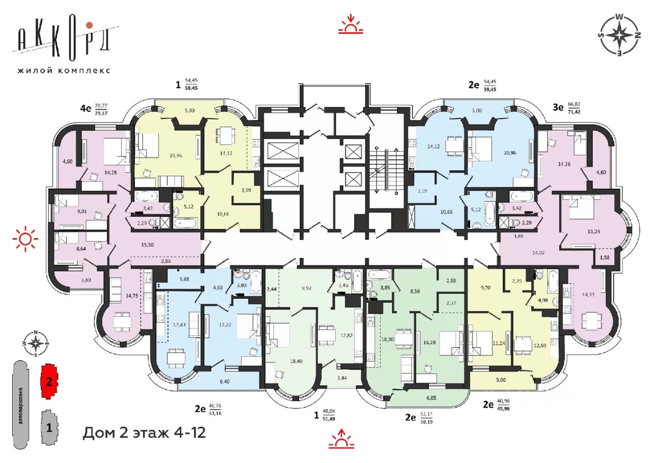 Состоит из двух домов высотой 25 этажей. На территории комплекса предусмотрена стильная и красочная детская площадка, которая станет настоящей радостью для маленьких жителей. Дизайн-проект подъездов продуман с особым вниманием к деталям, которые создадут уютную атмосферу.