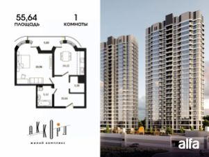 Продаётся 1-комнатная квартира 59,14 м2 от застройщика в жилом комплексе "Аккорд".