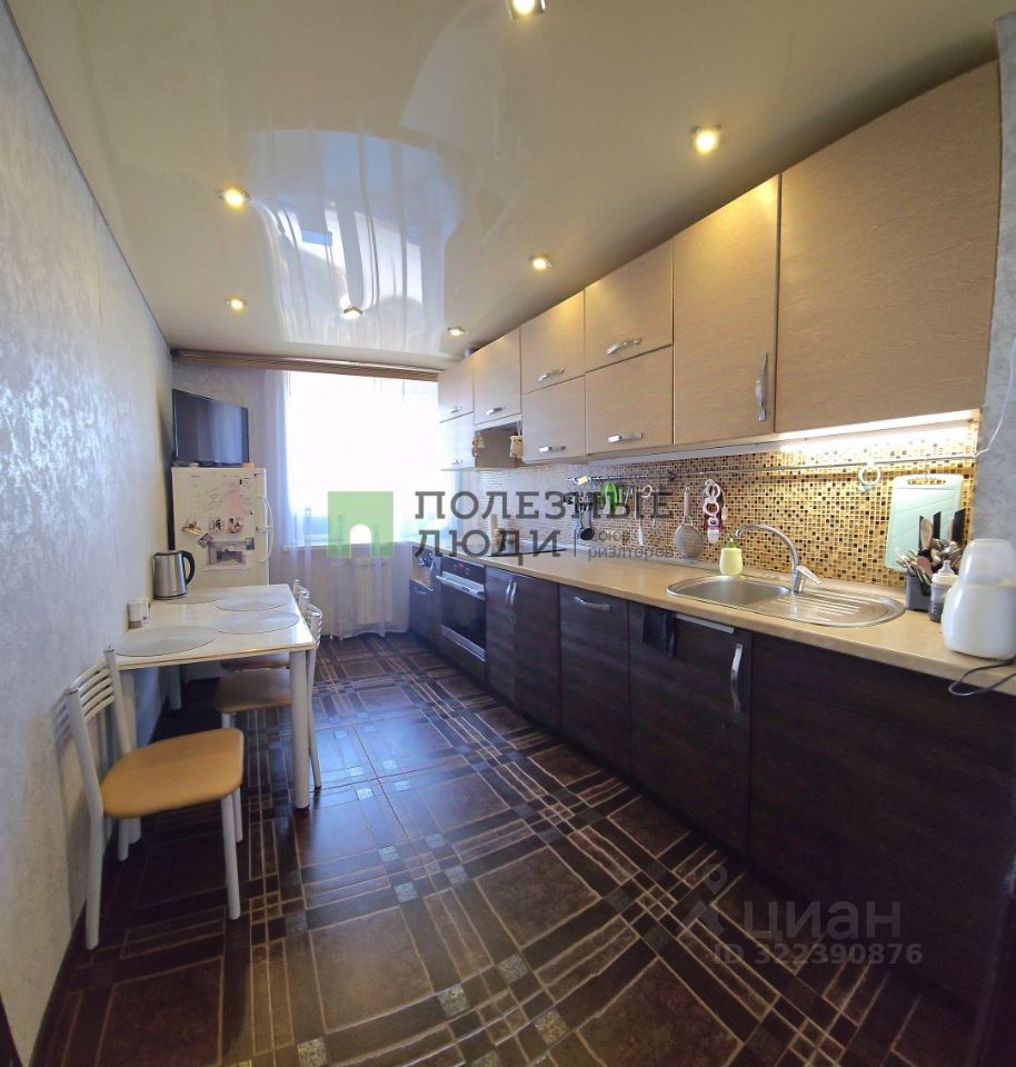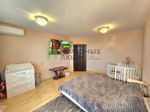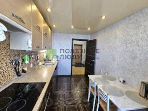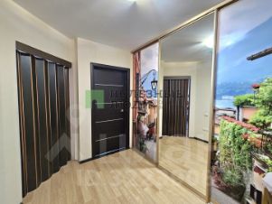 В квартире пластиковые окна, натяжной потолок в кухне, остальные помещения побелка. Софиты, люстры остаются. На полу в кухне, входная зона в прихожей, санузел керамогранит, в остальном - ламинат, на стенах обои. Отделена гардеробная дверьми-купе. Установлен кондиционер.