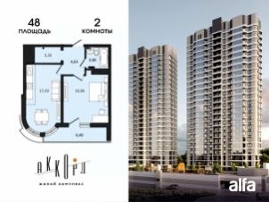 Продаётся 2-комнатная квартира 52,48 м2 от застройщика в жилом комплексе "Аккорд".