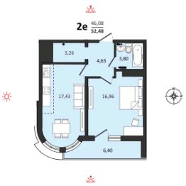 Продаётся 2-комнатная квартира 52,48 м2 от застройщика в жилом комплексе "Аккорд".