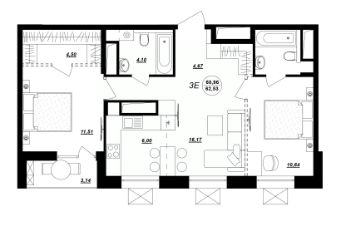 Продаётся 3-комнатная квартира в строящемся доме (Жилой дом 3), срок сдачи: II-кв. 2027, общей площадью 63.28 кв.м., на 2 этаже. Новый жилой комплекс "ГОЛЛАНДСКИЙ КВАРТАЛ" от Специализированного застройщика "Свой Квартал" расположен по адресу: г. Хабаровск, по ул. Демьяна Бедного.