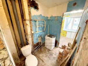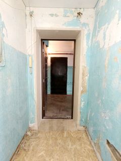 Квартира находится на этапе черновой отделки. Уже выполнена самая грязная работа: демонтаж стен, дверей, окон и труб.