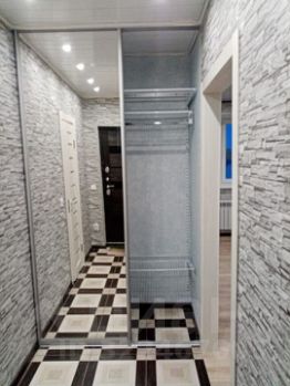 В прихожей расположен зеркальный очень вместительный шкаф-купе.