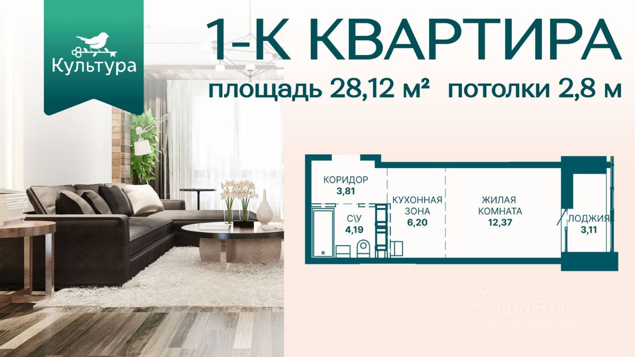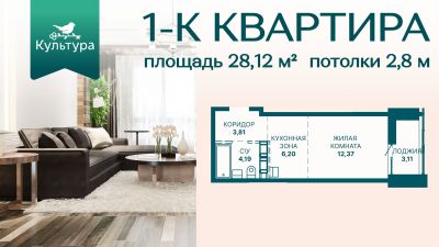 Общая площадь28,12 м²