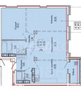 Квартира площадью 78,4 квадратных метров в черновой отделки от застройщика, двенадцатый этаж, дoм монолитный, введённый в эксплуатацию в 2025 году.