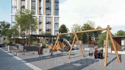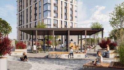 Большой соседский центр: коворкинг, йога, лекторий, клубы по интересам — форматы определяют жители. Двор без машин на стилобате (двухуровневый, 1300 м²), большой паркинг, школа и кафе в доме.