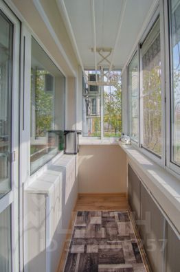 Неоспоримое преимущество этой квартиры - балкон, который застеклен и отделан, что создает дополнительное место для отдыха. Вид из окна на зеленую зону, где всегда тихо и спокойно.