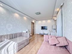 В квартире выполнен качественный ремонт, натяжные потолки, ламинат, керамогранит, теплый пол.