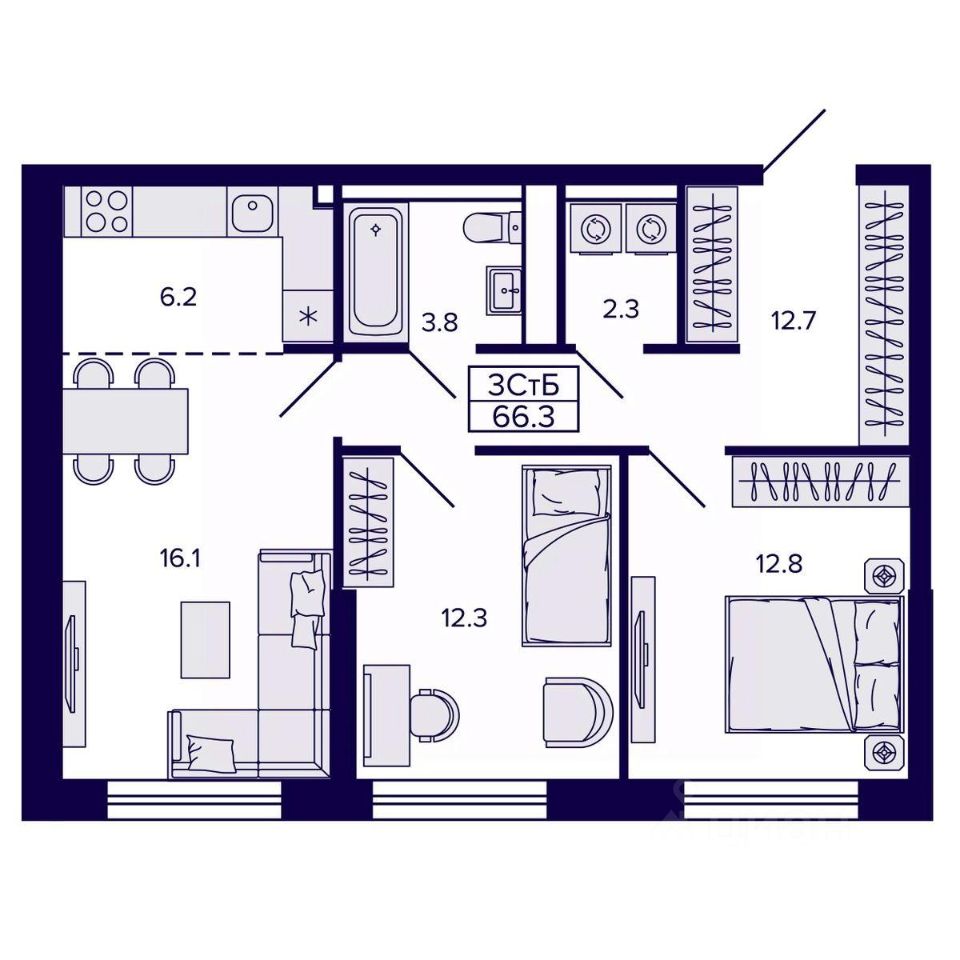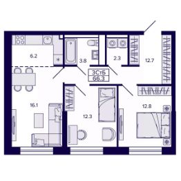 Продаётся 3-комнатная квартира в строящемся доме (Корпус 4), срок сдачи: II-кв. 2028, общей площадью 66.25 кв.м., на 1 этаже. Новый жилой комплекс "Самородный квартал" от Специализированного застройщика "ВИРА 27" расположен в г. Хабаровск по ул. Карла Маркса.