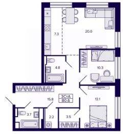 Продаётся 3-комнатная квартира в строящемся доме (Корпус 4), срок сдачи: II-кв. 2028, общей площадью 80.62 кв.м., на 2 этаже. Новый жилой комплекс "Самородный квартал" от Специализированного застройщика "ВИРА 27" расположен в г. Хабаровск по ул. Карла Маркса.