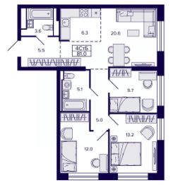 Продаётся 4-комнатная квартира в строящемся доме (Корпус 4), срок сдачи: II-кв. 2028, общей площадью 80.98 кв.м., на 2 этаже. Новый жилой комплекс "Самородный квартал" от Специализированного застройщика "ВИРА 27" расположен в г. Хабаровск по ул. Карла Маркса.