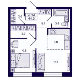 Продаётся 2-комнатная квартира в строящемся доме (Корпус 4), срок сдачи: II-кв. 2028, общей площадью 44.47 кв.м., на 2 этаже. Новый жилой комплекс "Самородный квартал" от Специализированного застройщика "ВИРА 27" расположен в г. Хабаровск по ул. Карла Маркса.