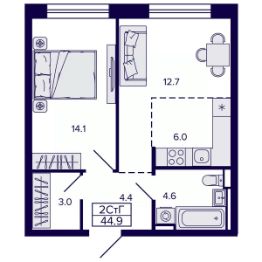 Продаётся 2-комнатная квартира в строящемся доме (Корпус 4), срок сдачи: II-кв. 2028, общей площадью 44.9 кв.м., на 6 этаже. Новый жилой комплекс "Самородный квартал" от Специализированного застройщика "ВИРА 27" расположен в г. Хабаровск по ул. Карла Маркса.