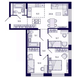 Продаётся 4-комнатная квартира в строящемся доме (Корпус 4), срок сдачи: II-кв. 2028, общей площадью 80.77 кв.м., на 6 этаже. Новый жилой комплекс "Самородный квартал" от Специализированного застройщика "ВИРА 27" расположен в г. Хабаровск по ул. Карла Маркса.