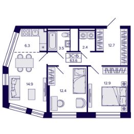 Продаётся 3-комнатная квартира в строящемся доме (Корпус 4), срок сдачи: II-кв. 2028, общей площадью 63.58 кв.м., на 6 этаже. Новый жилой комплекс "Самородный квартал" от Специализированного застройщика "ВИРА 27" расположен в г. Хабаровск по ул. Карла Маркса.