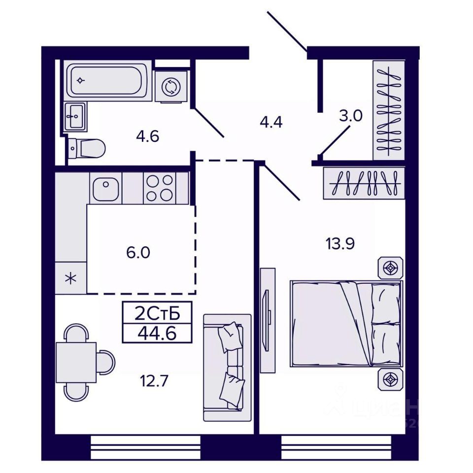 44,55 м²